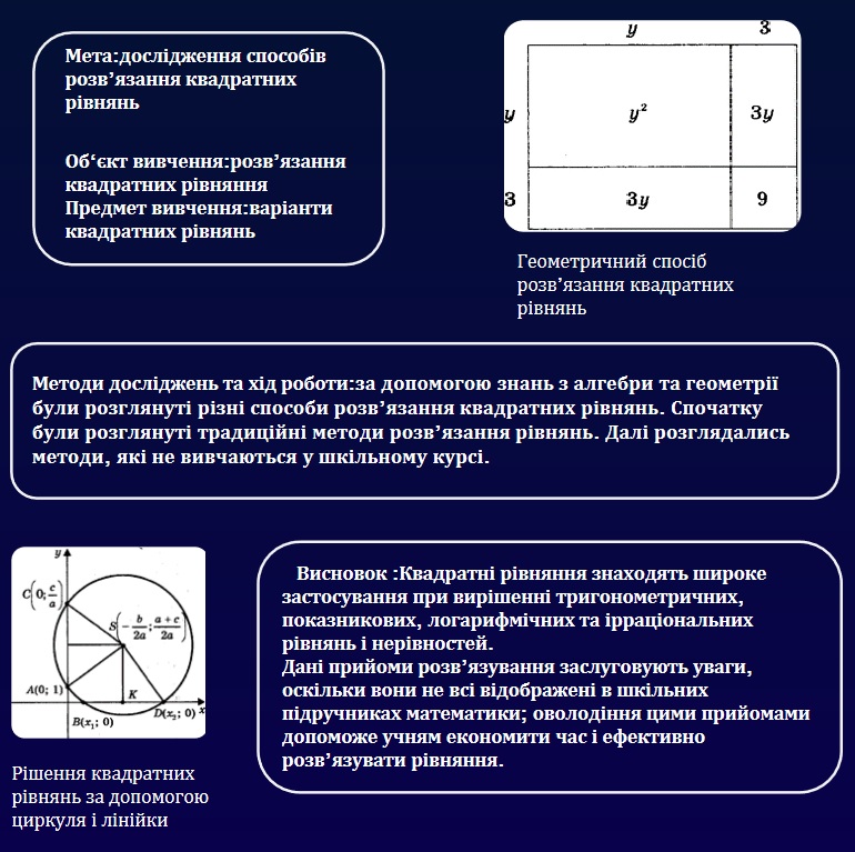 Квадратні рівняння знаходять широке застосування при вирішенні тригонометричних, показникових, логарифмічних та ірраціональних рівнянь